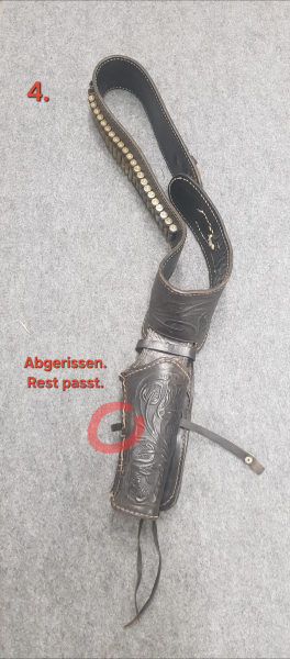 Biete einen Western Revolver Modell MEXIKO 38.LEDER UND MIT DECOPATRONEN.LÄNGE 110.