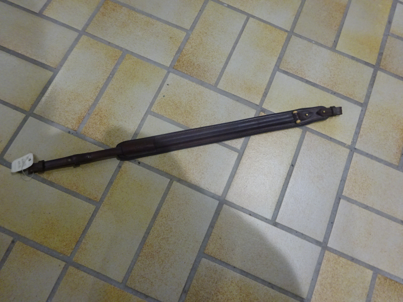 neuer hochwertig verarbeiteter Leder-Gewehr-Riemen, breiet Form mit schmaler Verstellung , Holzapplikationen und jagdlich geprägtem Hersteller-Motiv, siehe Fotos und mein egun