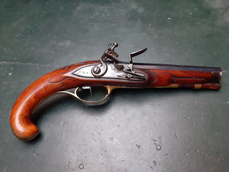 Sehr gefällige unberührte Pistole mit einer Länge von 26 cm. Ungewöhnlich gute museale originale Erhaltung bei dem Alter von ca 270 Jahren. Das Stück scheint sehr wenig benutzt worden zu sein, immer gut trocken und geputzt aufgehoben worden zu sein.