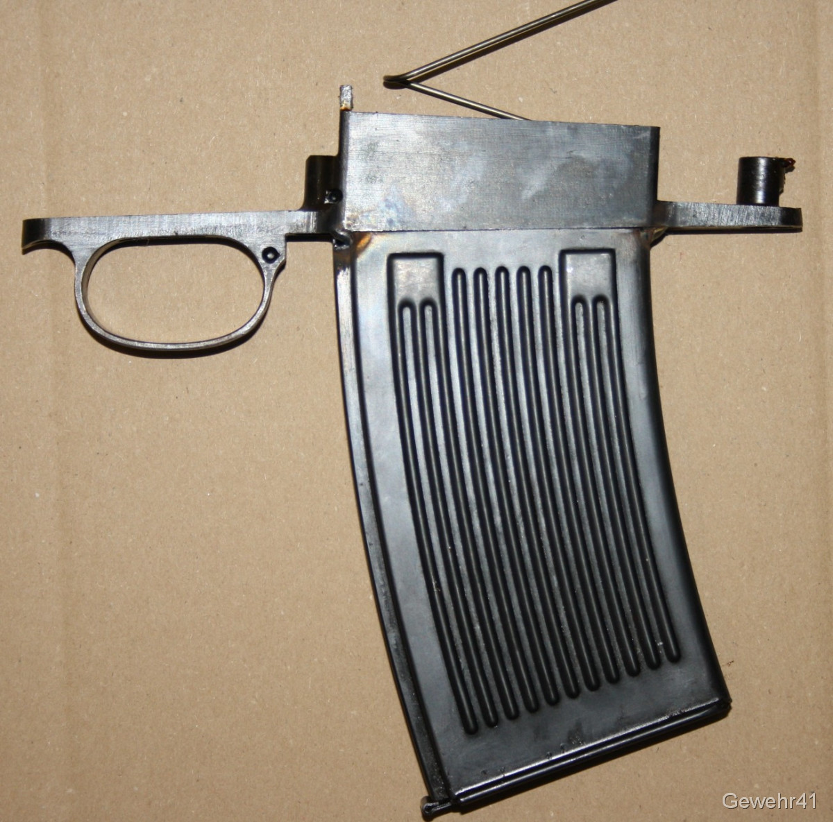 Sie kaufen dieses sog. Grabenmagazin für 98er Mauser Systeme. Gegen Ende des Krieges wurden solche Umbauten aus vorhandenen MG13 Magazinen vereinzelt angefertigt um die Magazin-Kapazität zu erhöhen. Äußerst effektiv, Funktion einwandfrei. Kein verbotener Gegenstand, da dies KEIN Magazin ist, sondern ein vergrößerter Magazinkasten. Also frei verkäuflich.