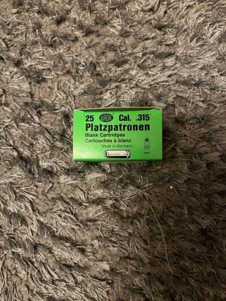 Zum Verkauf steht je Sofortkauf eine Packung 315 K Platzpatronen der Marke Wadie für Schreckschuss Waffen.