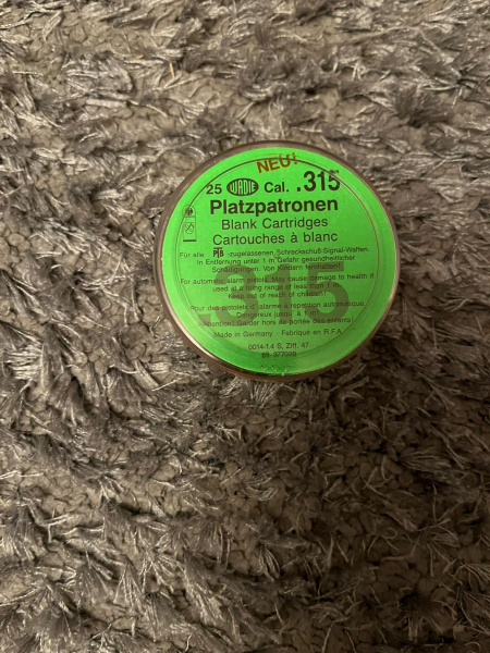 Zum Verkauf steht je Sofortkauf eine Packung 315 K Platzpatronen der Marke Wadie für Schreckschuss Waffen.