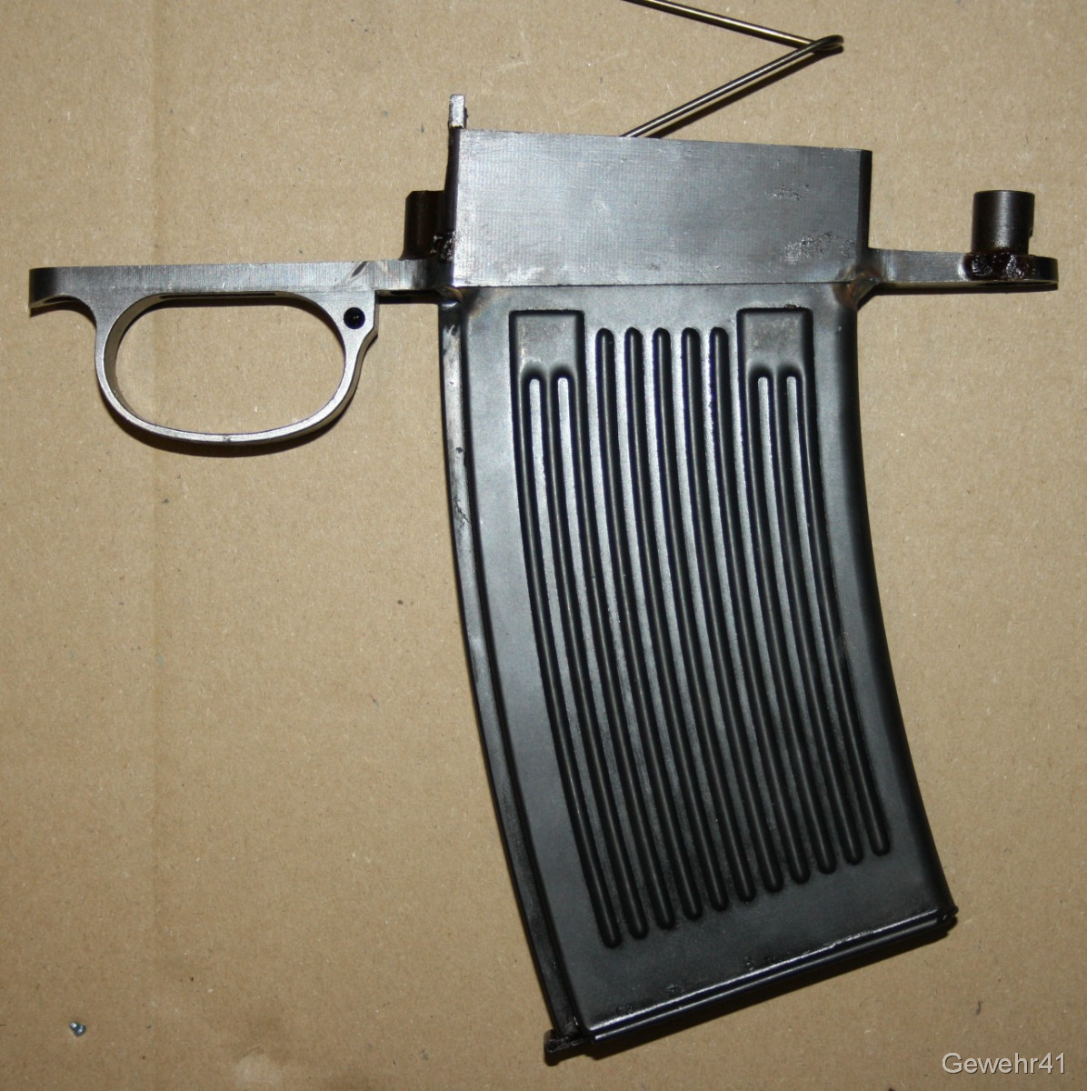 Sie kaufen dieses sog. Grabenmagazin für 98er Mauser Systeme. Gegen Ende des Krieges wurden solche Umbauten aus vorhandenen MG13 Magazinen vereinzelt angefertigt um die Magazin-Kapazität zu erhöhen. Äußerst effektiv, Funktion einwandfrei. Kein verbotener Gegenstand, da dies KEIN Magazin ist, sondern ein vergrößerter Magazinkasten. Also frei verkäuflich.