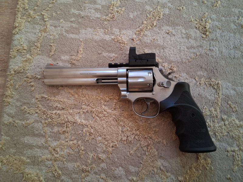 Zum Verkauf steht hier der beliebte Revolver von Smith & Wesson im Kaliber .357 Magnum/Kaliber .38 Special. Sehr guter Zustand. Gepflegte Waffe. Vereinzelt ganz leichte Gebrauchsspuren. Siehe Fotos. Montiert ist ein Meopta MeoSight 4 und club 30 Griffschalen, für weitere Fragen stehe ich gern zur Verfügung. Keine Rücknahme und keine Garantie. ACHTUNG: Zum Kauf dieses Produkts ist die Vorlage der Erwerbsberechtigung erforderlich
