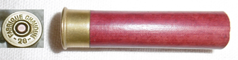 Angeboten wird 1 leere, ungebrauchte Schrothülsen Kal. 28 in neuwertigem Zustand. FABRIQUE CHAUDUN.
