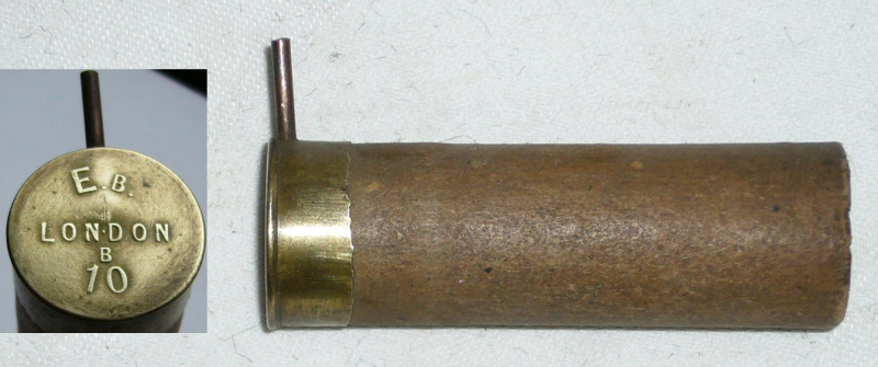 Angeboten wird 1 leere, ungebrauchte Lefaucheux-Schrothülse Kal. 10 , frühe Eley-Fertigung, erhaben gestempelt.