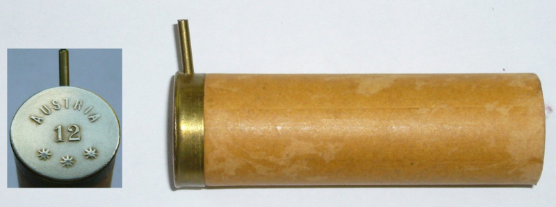 Angeboten wird 1 leere, ungebrauchte Lefaucheux-Schrothülse Kal. 12, Marke AUSTRIA, frühe Hirtenberg-Fertigung, erhaben gestempelt.