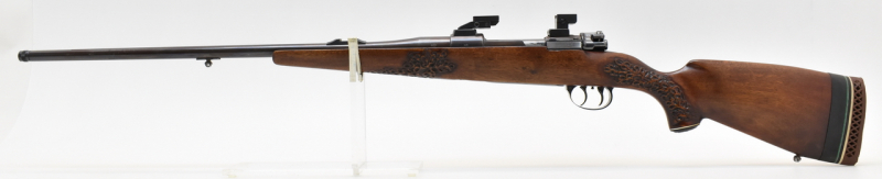 Jagdrepetierer mit einem 13x1 Mündungsgewinde und einem deutschen Stecherabzug. Spiegelblanker Lauf, Schaftlänge 36cm ( gemessen Abzug bis Mitte Schaftkappe) Schwenkmontageteile für Glas mit Innenschiene .