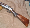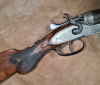 Englische Randstich- und Arabeskengravur, Nussbaumschaft mit feiner Fischhaut (am Vorderschaft leichte Griffspuren),