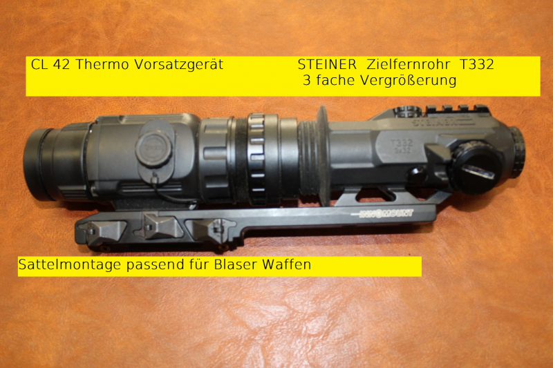 Zielfernrohr Steiner T3 fertig montiert mit Sattelmontage ähnl Fabrikat Blaser vorgeschaltet ein Thermovorsatzgerät CL 42 ,