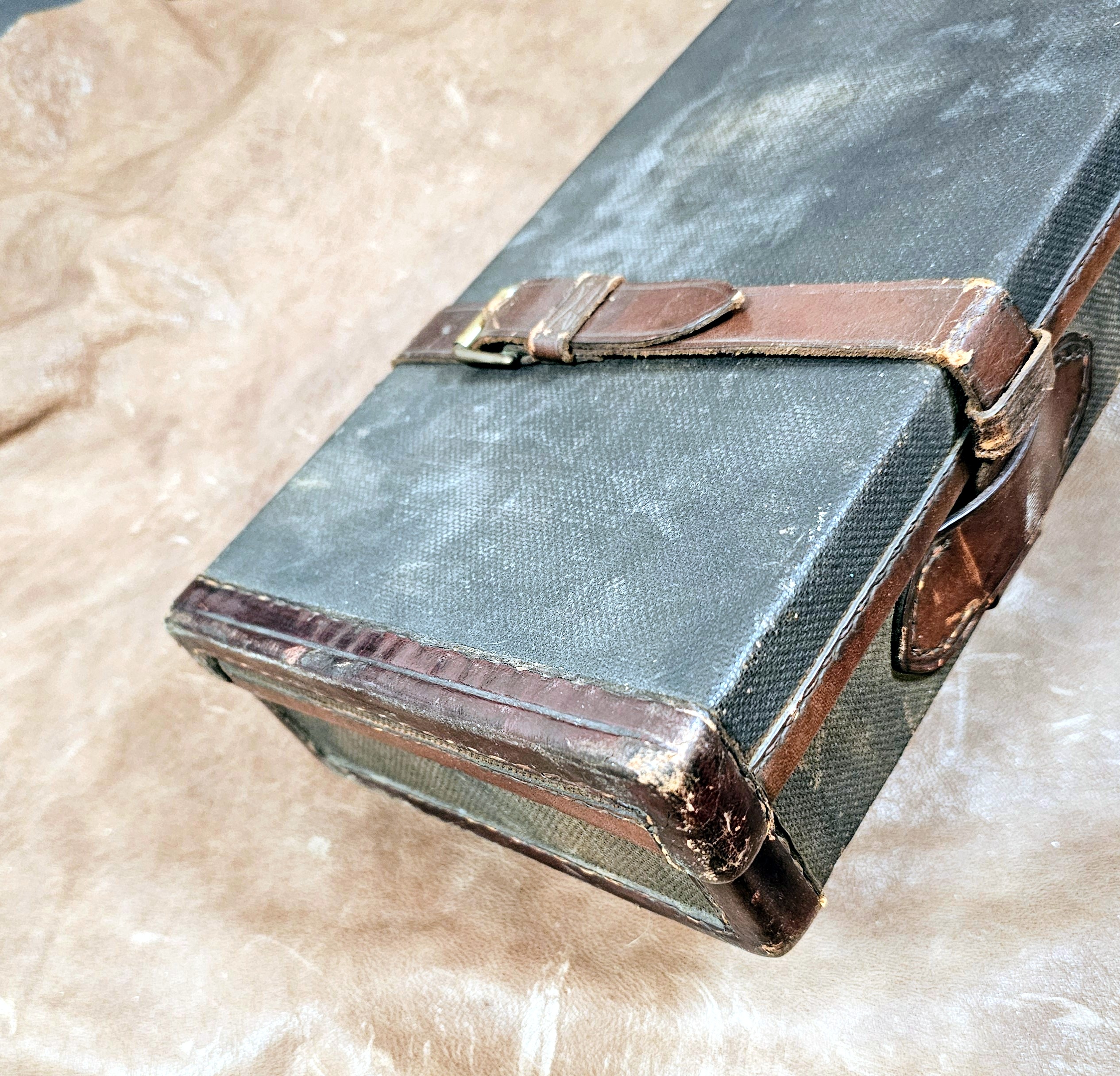 Leinenbezug schwarz-grün mit Lederverstärkungen und -Gurten,