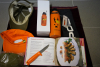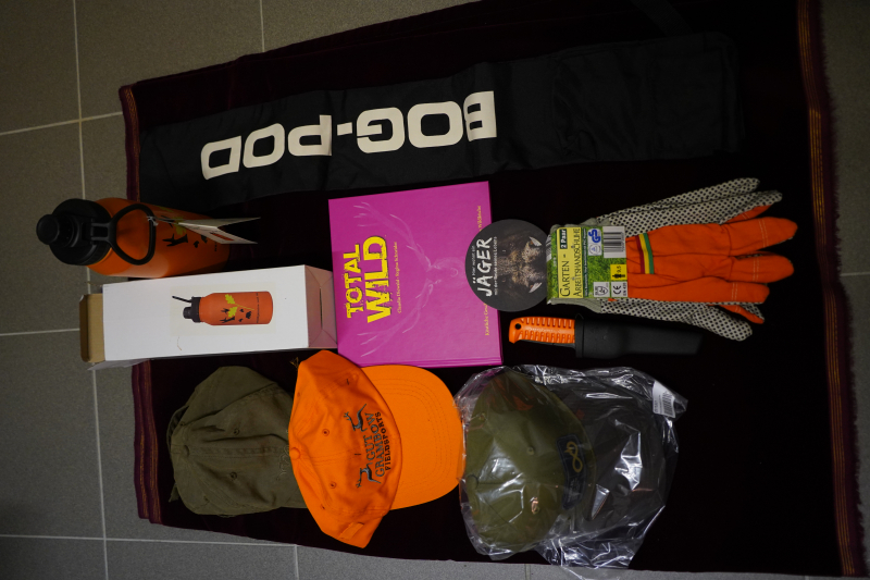 siehe Foto!, fast alles neu, konkret gehören die folgenden Gegenstände zum Konvolut: 3 Caps: einmal Merkel Gear 1 x Gut Grambow -Cap in signalrot, Blaser - Cap (diese ist gebraucht!, die anderen neu); Trinkflasche von Frankonia (neu), Messer, Wildkochbuch, Boggear - Tasche (z.B. für Stative o.ä.); 2 Paar Garten- Handschuhe; Fragen gern; ansonsten viel Spass beim Bieten!