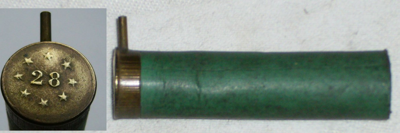 Angeboten wird 1 leere, ungebrauchte Lefaucheux-Schrothülse Kal. 28, grüne Hülse. Eine frühe Fertigung von Louis Bachmann in Brüssel, erhaben gestempelt. Diese Hülse lagerte auf dem offenen Dachboden der Büchsenmacherei ERDELT in Neustadt/Haardt (Weinstraße). 100 Jahre haben eine Menge Schmutz hinterlassen, der noch nicht ganz entfernt ist.