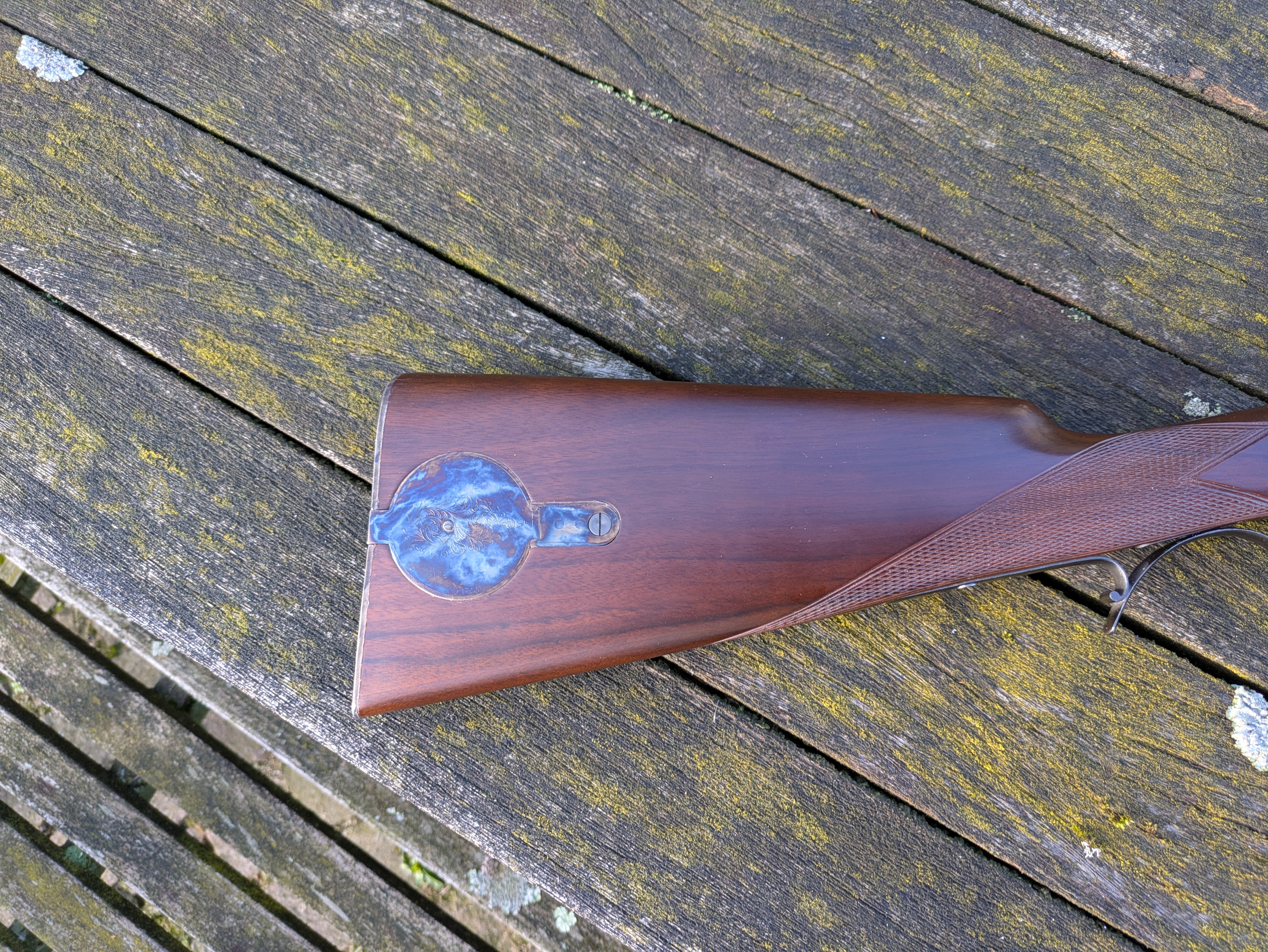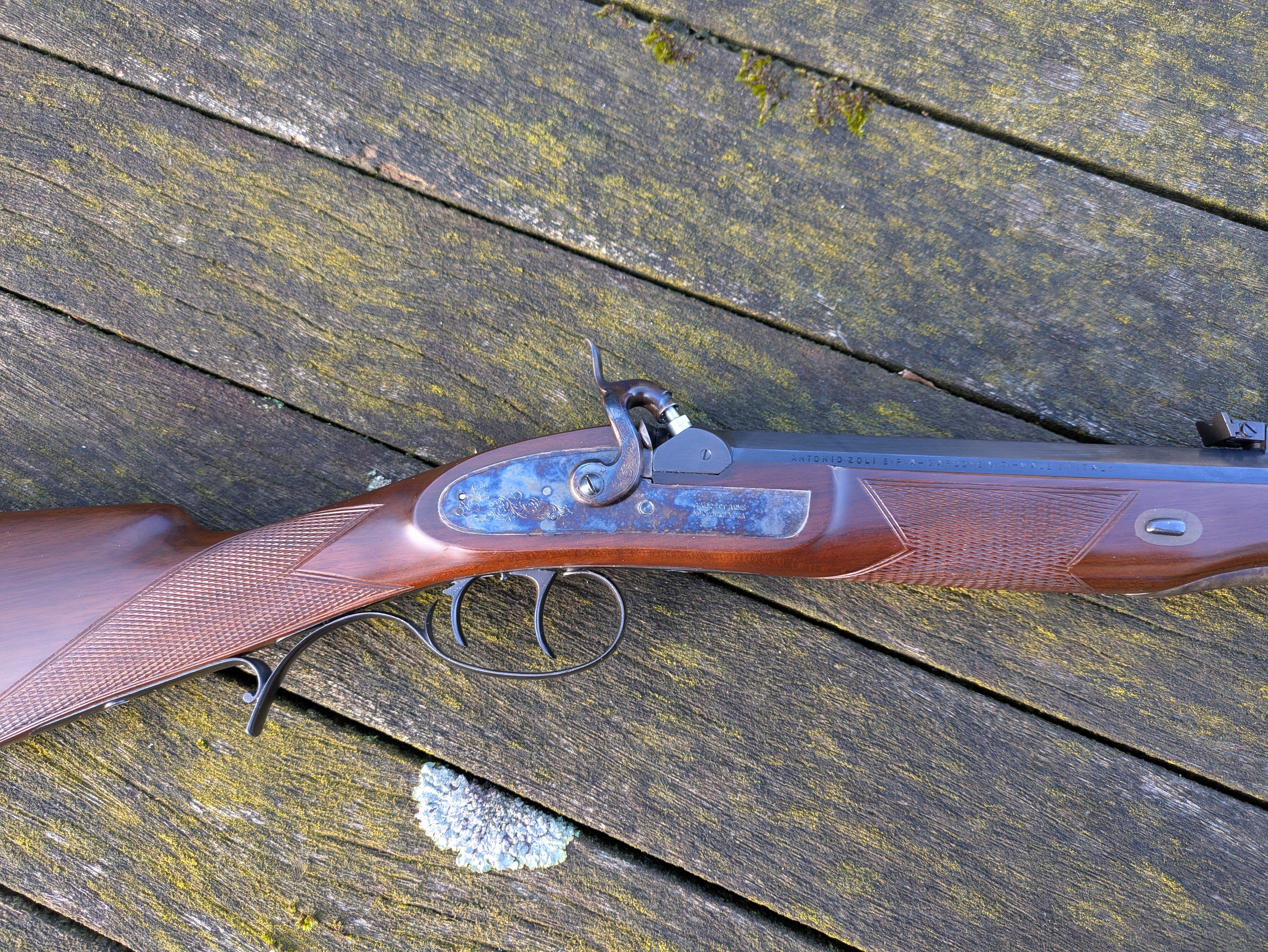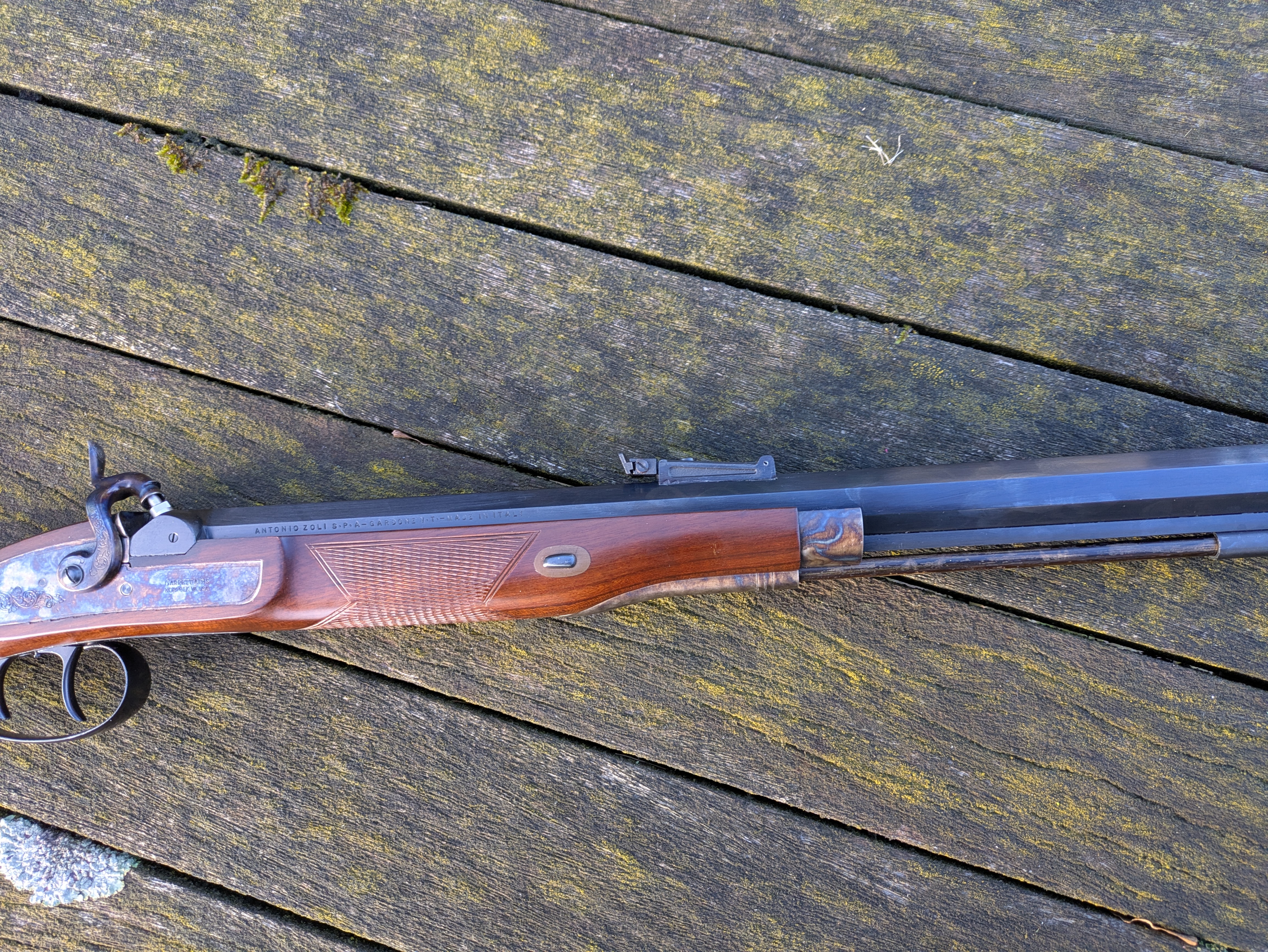 Das Schlossblech ist graviert mit dem Namen des Importeurs, GARRETT ARMS NORFOLK VA. USA