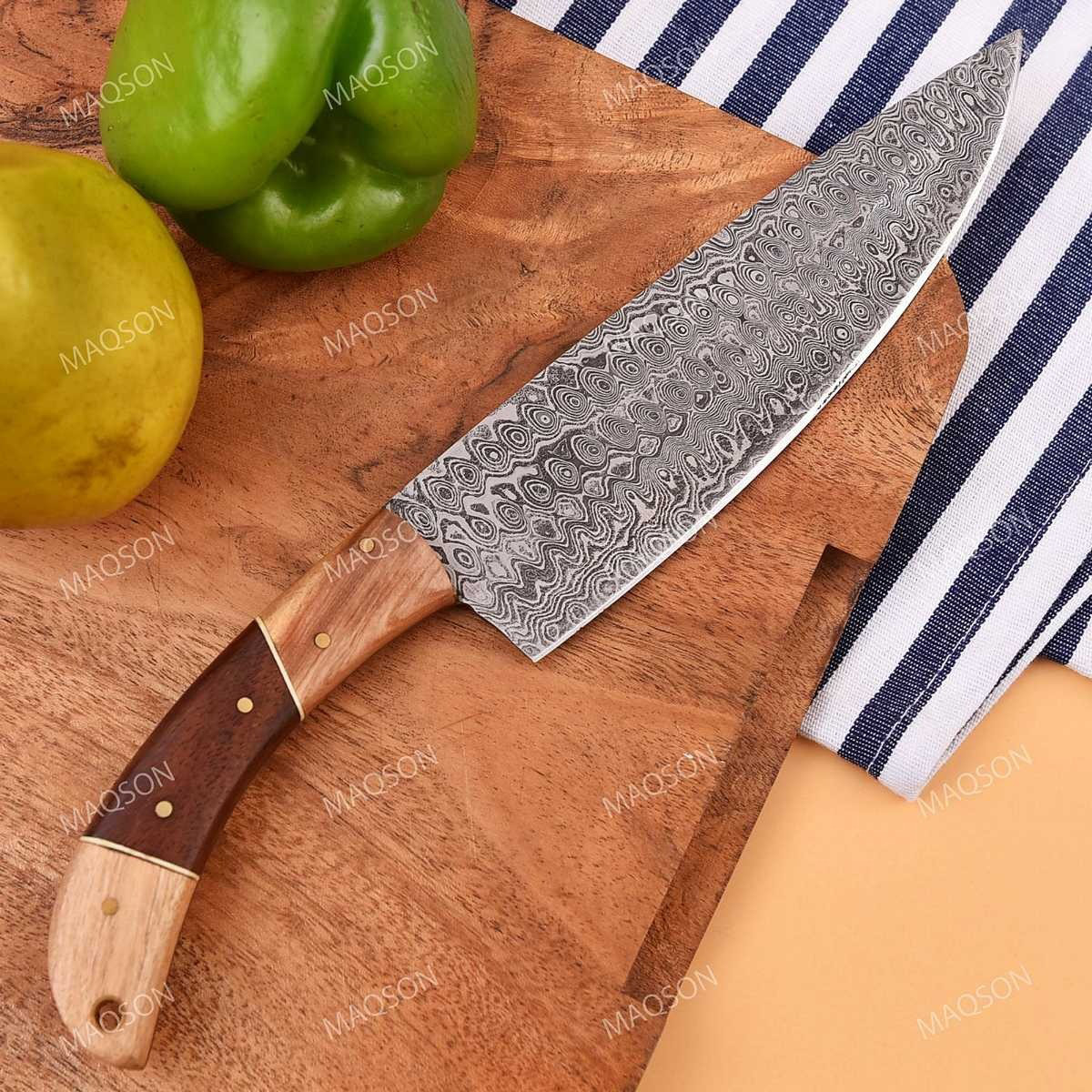 Custom Damascus Steel Chef Knife Handmade With WOOD Handle