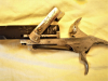 Außenliegendem Hahn mit Sicherheitsraste, Aufklappverschluss, Auszieherschlitten mit integriertem Patronenschlagstift (Warnant-Verschluss).