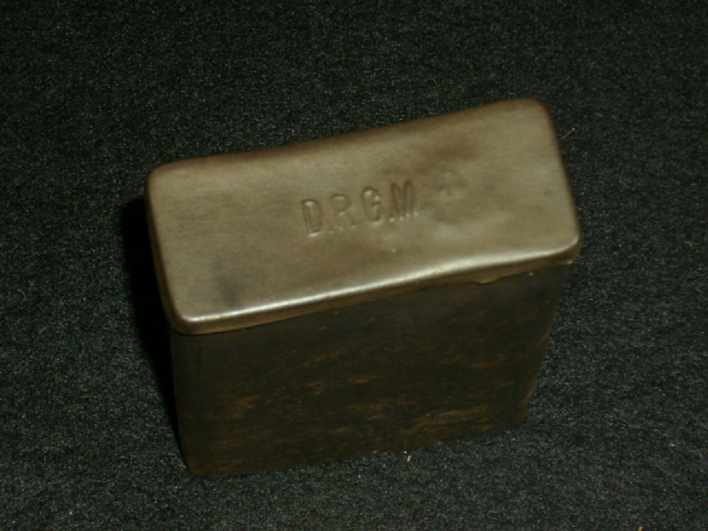 HJ Reinigungsgerät cal.22 DRGM , innen Oelflasche Blech ohne Deckel, eine Kette Messing mit Bürste, ohne Beulen, guter Zustand , ca.9x6x3 cm