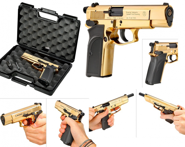Beispiel-Bild.......Vitrinen-Ausstellungsstück Browning GPDA9 9mm P.a.k. GOLD 24 Karat Legierung in TOP neuwertigem Zustand.......und ungeschossenem Zustand, komplett mit Abschussbecher,Anleitung und Bürste im abschließbaren Waffenkoffer........die Waffe wurde nun die letzten Monate im Waffenkoffer gelagert .............dieses Modell wird nicht mehr hergestellt und gilt als Rarität unter diesem Aspekt der letzten erhältlichen Stücken..............Versand erfolgt im versicherten Paket !