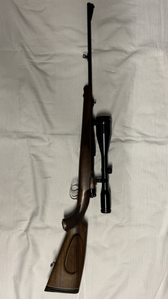 Zum Verkauf steht eine klassische deutsche Jagdrepetierbüchse auf Basis des bewährten Mauser-98-Systems, ausgeführt als hochwertiger Jagdumbau. Das Gewehr basiert auf dem legendären Mauser-98-System, das für seine Robustheit und Zuverlässigkeit bekannt ist. Der Umbau zum Jagdgewehr erfolgte fachgerecht und ist typisch für deutsche Büchsenmacherarbeiten der 1960er/70er Jahre. Der Stecherabzug ermöglicht präzise Schüsse vom Ansitz, die Bühler-Sicherung erlaubt eine niedrige Zielfernrohrmontage und sichere Bedienung. Die .300 Winchester Magnum ist ein leistungsstarkes Hochwildkaliber mit gestreckter Flugbahn.