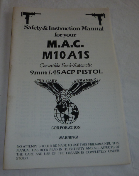 M.A.C. M10 A1 S, 9 mm/ 45 ACP Pistol "Manual" rar