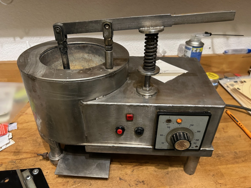 Zum Verkauf steht ein gebrauchter, funktionsfähiger Gießofen/Schmelzofen aus einer Kleinserie. Kein Vergleich zu den „Töpfen“ von Lee, Lyman, RCBS aus US-Produktion. Fassungsvermögen ca. 20 kg Blei. Bleibehälter: Innendurchmesser 15 cm, Höhe 15,5 cm, Bodenauslass. Die zuverlässige Regelung sorgt für konstante Temperaturen und gleichmäßigere Geschosse. Der Ofen ist massiv gebaut und überwiegend aus Edelstahl. Die Kokille kann unabhängig von der Anzahl der Kavernen mithilfe des Abstandshalter so eingestellt werden, dass die erste Kaverne automatisch unter dem Ventil positioniert ist. Dadurch wird der Ablauf deutlich vereinfacht. 230 V.