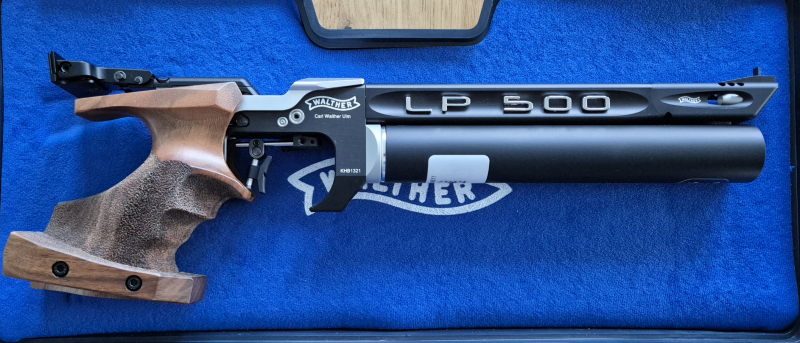 Walther LP500 mit Nussbaumgriff (S/Rechts).