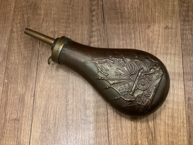 Verkauft wird hier eine Pulverflasche Messing - Kupfer mit Kanone