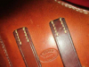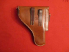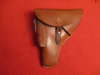 Lederholster für Pistole SIG 210, Linksausführung (?). Ist wohl unbenutzt. Als Hersteller ist die Firma E.Widmer, Sattler, U'Kulm, eingestanzt.Nähte