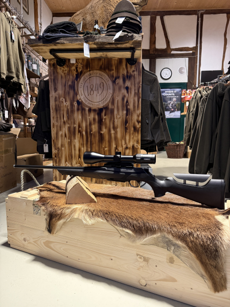 Merkel Helix Explorer im Kaliber .308 Winchester mit schwarzem Kunststoffschaft, Mündungsgewinde, in gepflegtem, gebrauchten Zustand. Die Repetierbüchse ist technisch einwandfrei, absolut zuverlässig und überzeugt durch ihre saubere Funktion. Die Waffe weist eine Gesamtschussleistung von ca. 200 Schuss auf. Das Steiner Glas wurde erst vor kurzem neu verbaut (ca. 20 Schuss). Auf der linken Seite befindet sich eine Laser-Aufschrift „Ausbildungswaffe“. Verbaut ist eine hochwertige Steiner Ranger 4 Optik (3–12×56 mm), ideal für den jagdlichen Einsatz bei unterschiedlichsten Lichtverhältnissen. Weitere Details und Zustand entsprechen den Bildern bzw. der Besichtigung vor Ort.