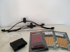 1x Benutzerhandbuch 1x Schnelllader 1x Wurfarm 60 lbs fertig montiert im Montageblock 1x Wurfarm 30 lbs ebenfalls fertig im Montageblock montiert. 10 Pfeile (Alu-Bolzen 6,3" Rot) 36 Pfeile (Alu-Bolzen 6,3" Gold, geschraubte Metallspitzen) 1x Reddot (Zieloptik) 1x Schutzbrille