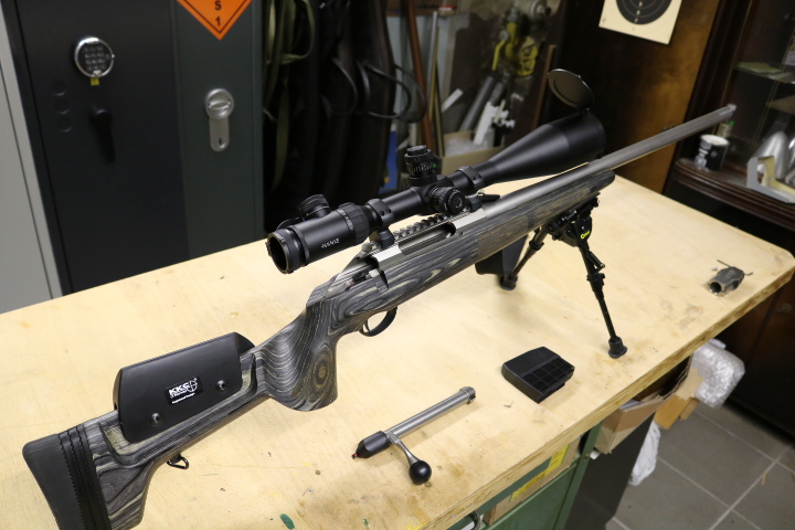 Es besitzt ein ZF von HAWKE 10-50x68 und es ist von mir mit einem Matchschaft von KKC ausgerüstet worden.