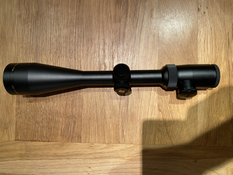 Sie bieten auf ein Zielfernrohr Nikon Monarch UCC 3,5-10x50 mit Absehen 4. Das Absehen besitzt einen Leuchtpunkt, der wahlweise grün (5 Stufen) oder rot (3 Stufen) zugeschaltet werden kann. Der Mittelrohrdurchmesser beträgt 25,4mm. Die Gesamtlänge des Zielfernrohres beträgt 34,50 cm. Der Objektivaußendurchmesser beträgt 57mm. Der Okularaußendurchmesser beträgt 41mm . Das Glas befindet sich in einem Top Zustand. Die Linsen sind glasklar und ohne Kratzer. Die Montagespuren sind absolut geringfügig und so gut wie nicht erkennbar. Verstellrichtungen in voller Funktion, kein Nachrücken oder Altersanzeichen.