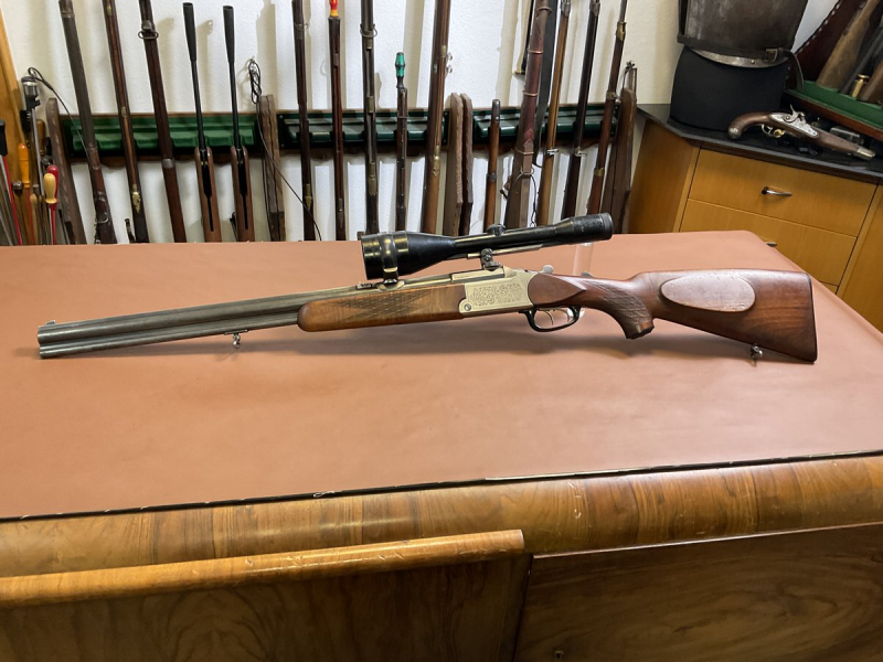 Zum Verkauf steht eine Blaser Bockbüchsflinte im Kaliber .222 Remington (Kugellauf) und 16/70 (Schrotlauf).