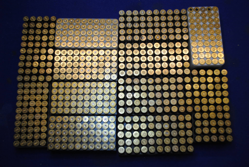 Sie bieten auf 600 Hülsen gereinigt , nicht entzündert oder kalibriert , unterschiedliche Hersteller und dazu 2 Kunststoffboxen für je 50 Patronen im Kaliber .357 Magnum .