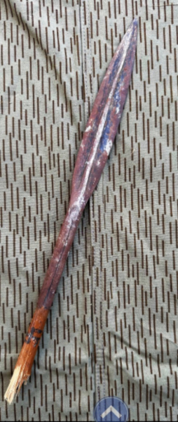 Speerspitze eines Askari Kämpfer 1 und 2. Weltkrieg, es ist eine Originale Spitze mit jeweiliger Markierung auf dem Holz. Aus Sammlungsauflösung