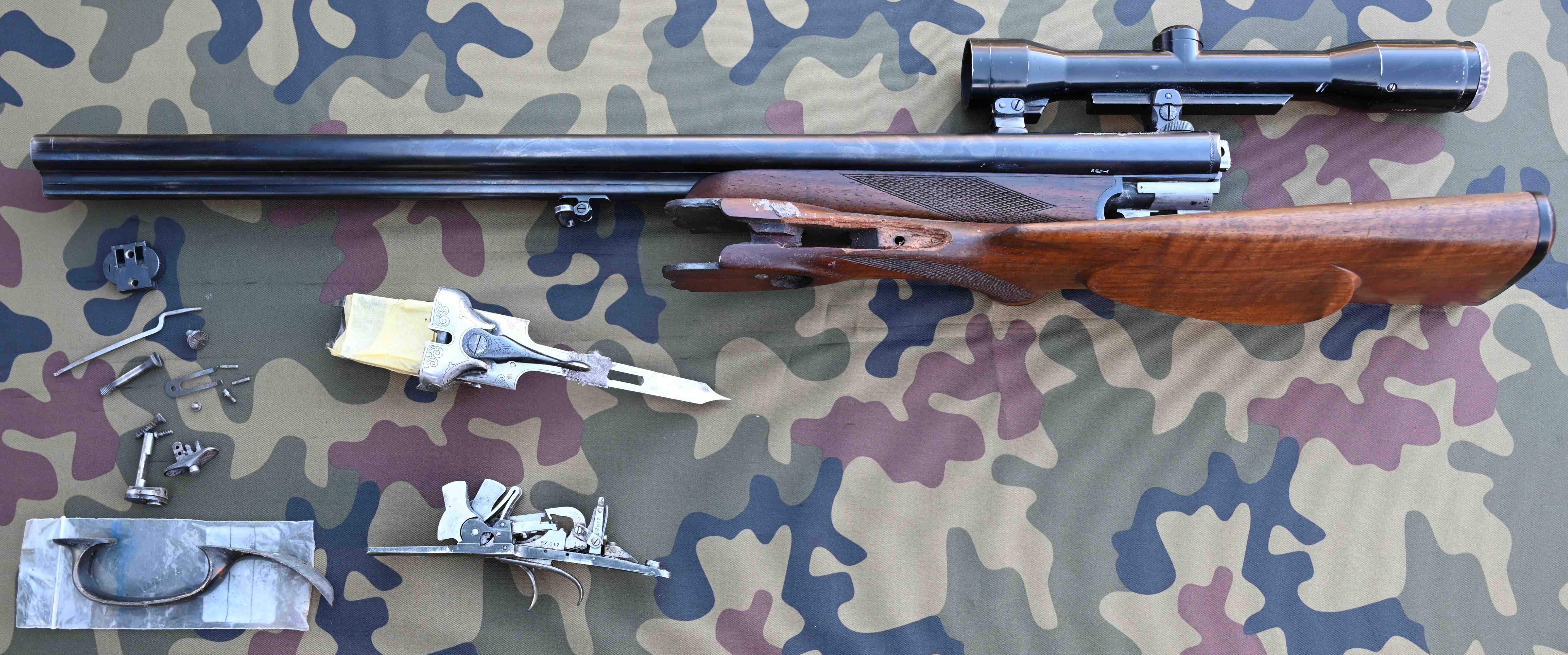 Defekter Drilling, Kombinationswaffe, Jagdgewehr, Dreiläufer, Bastlerstück, Ersatzteilspender: