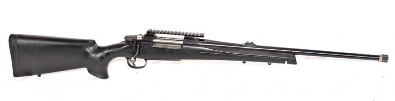 Führiger Repetierer. Hergestellt aus besten Materialien. Robuster Zylinderverschluss mit Spannanzeige und lautlose, seitliche Schiebesicherung. Sehr weicher Schlossgang. Kastenmagazin für 5 Patronen mit Klappdeckel. Feinabzug. Spiegelblanker, 53cm langer, freischwingender Lauf mit scharfen Feld/Zugprofil und Mündungsgewinde M14-1. Mit Picatinny-Schiene. Hochwertiger Kunststoffschaft mit weicher Schaftkappe. Neuwertig, Schussbelastung 10 Patronen. Komplett mit Karton, Anschussbild, Bedienungsanleitung, Korn, Kornschutz und weiteren Mündungsmutter. Kimme fehlt.