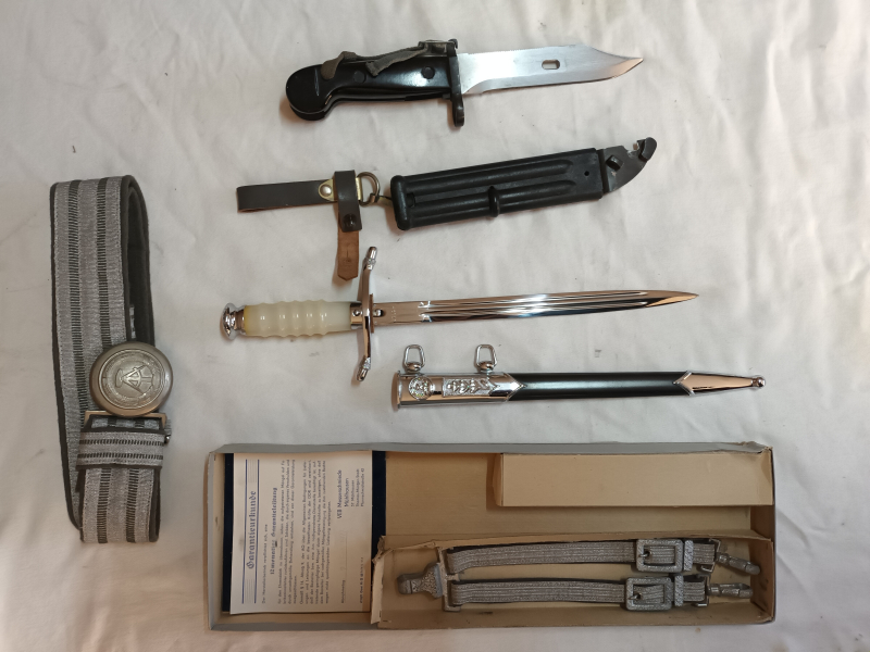 Zum Verkauf kommt hier eine fast vollständige Ausrüstung eines Hauptmann der GT inkl Dolch und Bajo. Es fehlen lediglich Unterhose,Socken und Sporthose kurz,Sporthallen und Sportschuhe.