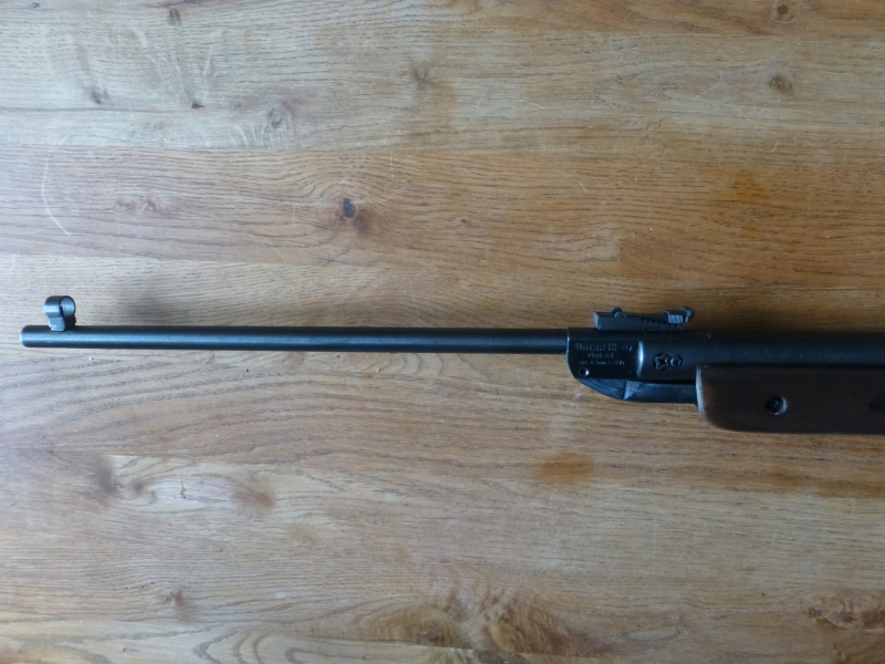 Das LG Umarex Mod.61 ist mit (F) gestempelt. Der technische Zustand ist perfekt, der Holzschaft hat geringe Gebrauchsspuren.