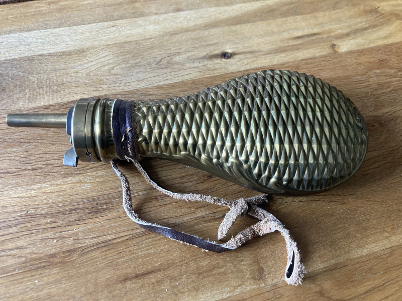 Hier kommt zur Versteigerung / Verkauf eine Pulver-Flasche ( Messing) mit funktionierendem Verschluss ( Feder einwandfrei ) mit Lederriemen. Gesamtlänge ca. 21 cm, Fülleinrichtung ca. 16 cm hoch, breiteste Stelle ( Flaschenbauch ) ca. 8 cm. Privatverkauf. Versand innerhalb Deutschland.