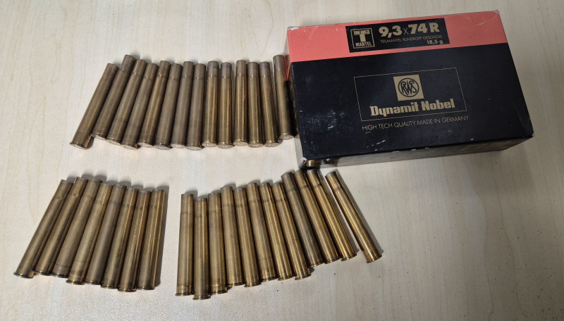 Sie bieten auf 34 Hülsen 1x Abgeschossen im Kaliber 9,3x74R. 20x Norma 8x RWS und 6x Geco