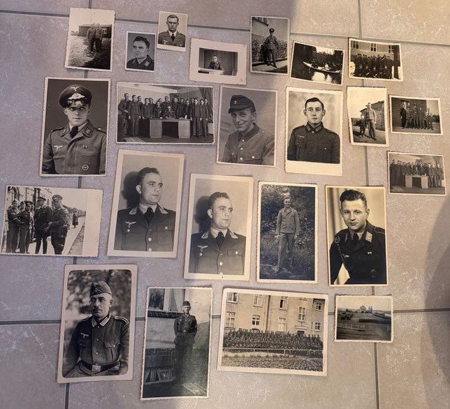 Die Fotos zeigen Angehörige der Wehrmacht und der Luftwaffe, darunter Offiziere, Gruppenaufnahmen sowie zeittypische Motive aus der Epoche des Dritten Reiches.