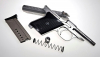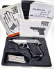 Original schwarze „Walther INTERARMS“ Hartschalenbox aus Kunststoff (S/N: T028608) mit: Originalersatzmagazin, Anschußscheibe, Bedienungsanleitung TPH, Walther TPH „Instruction And Safety Manual“ und Reinigungsstock aus Kunststoff.