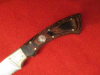 Messer aus dem Hause Böcker, Damastklinge. Unbespielt, allerdings mit Patina durch die Aufbewahrung im Lederholster. Weitere Fotos auf Anfrage.