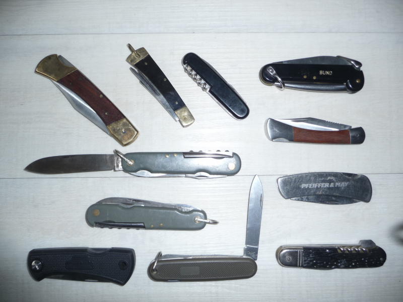 1 Taschenmesser Gusstahl Solingen, stark gebraucht, Polizei gestempelt.