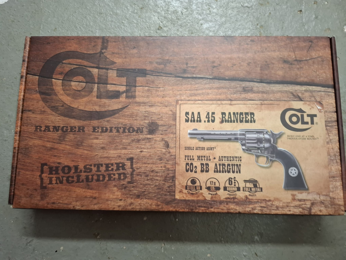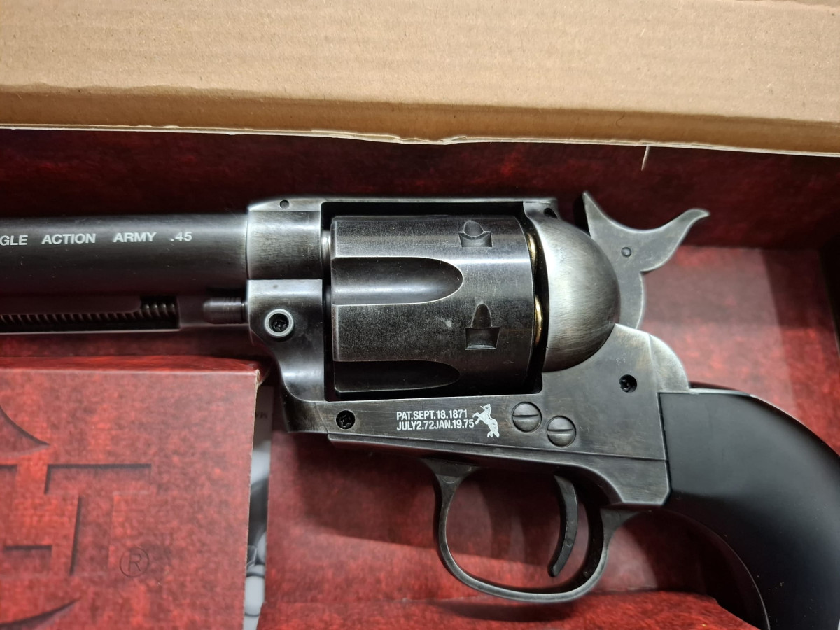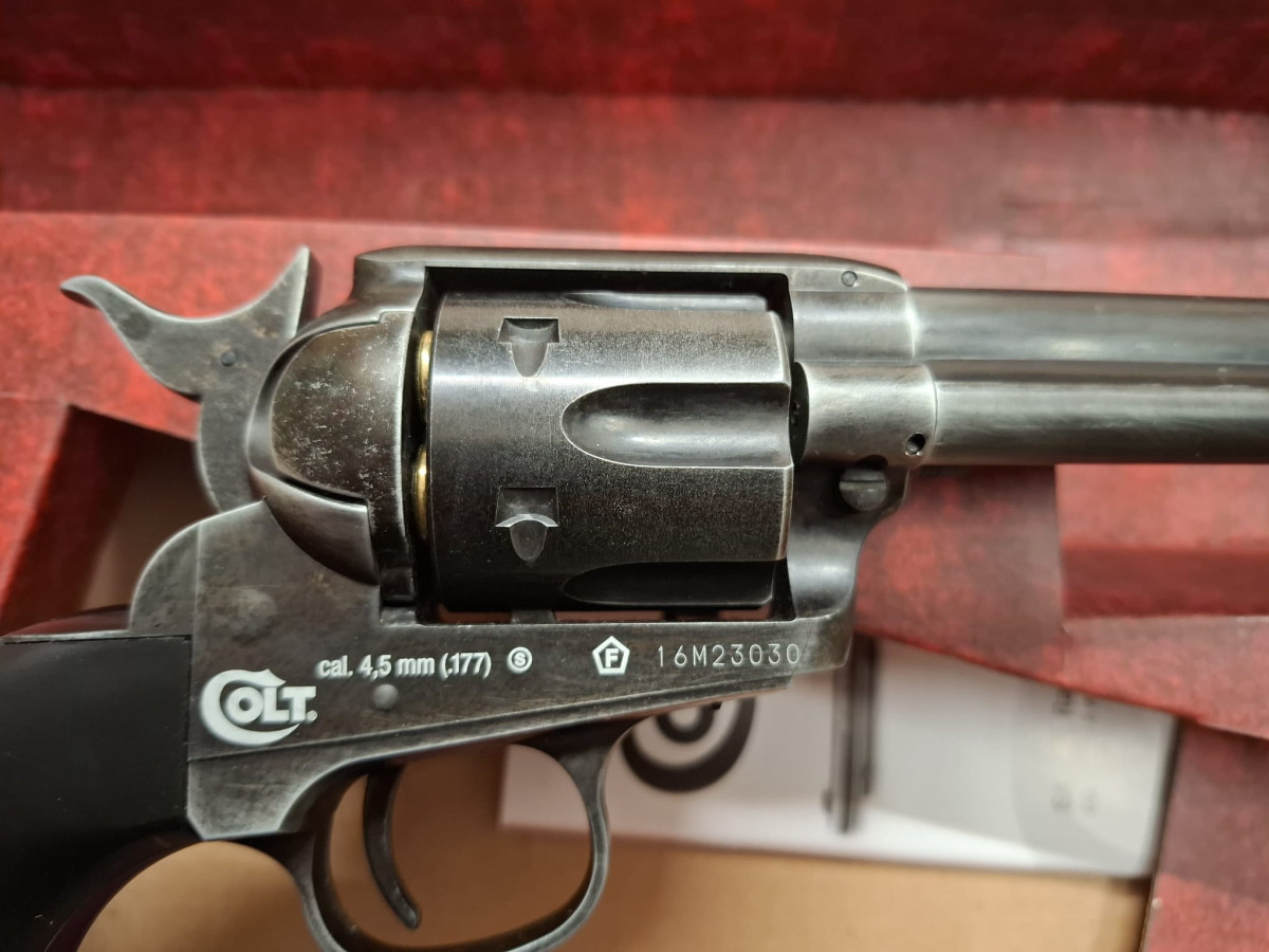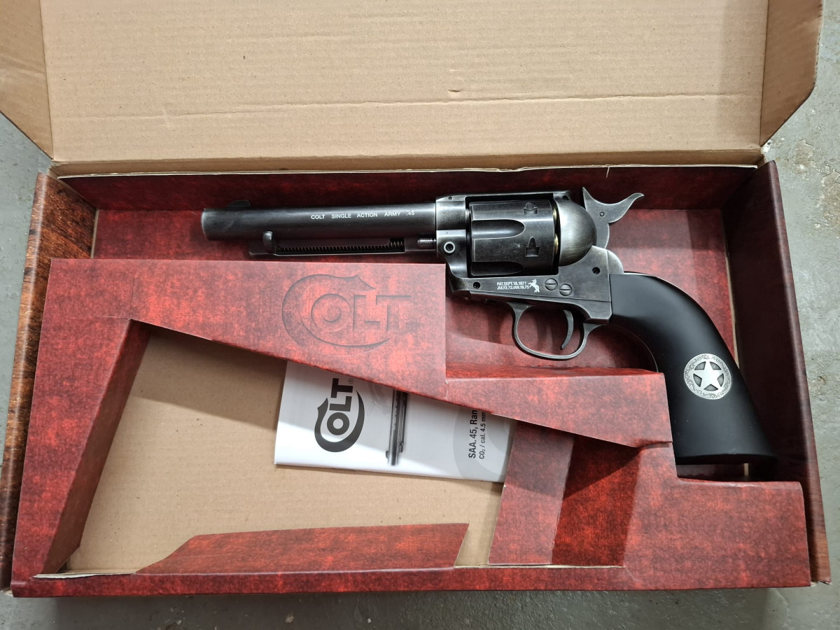Umarex Colt CO2 Revolver mit 6 Ladapatronen Vollmetall Version, sehr realistisch, bisher vermutlich noch ungeschossen, stammt aus Sammlernachlass, Antik-Finish used look