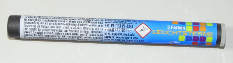 10 Leuchtsterne für 15 mm Kaliber in vier verschiedenen Farben. Bitte Hinweise der Hersteller auf den Verpackungen beachten.