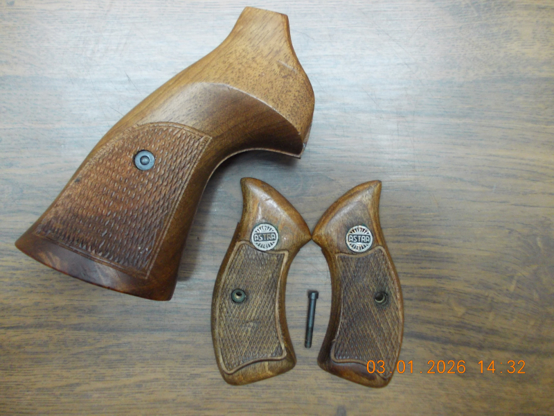 Die kleineren Holzgriffschalen, gehören an einen mir nicht bekannten Astra Revolver. Über die größeren Revolver-Holzgriffschalen, kann ich nichts beitragen. Verkaufe, nur in der BRD. Keine Garantie, noch Rücknahme.