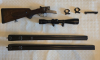 Ich biete hier aus dem Bestand eines Jagdkameraden, der die Jagd aus gesundheitlichen Gründen vor geraumer Zeit aufgegeben hat und die Waffen jetzt abgeben musste, eine Büchsflinte des bekannten Herstellers A.W.Wolf - Suhl an. Die Waffe ist in einem schlechten Pflegezustand, da sie ca. 4 Jahre in einem schlecht klimatisierten Umfeld gelagert wurde. Kaliber 8x57IRS und 16/70 (65cm), der Austauschlauf 2x 16/70 (70cm). Die Choke Bohrungen sollten ca. halb/voll und beim kombinierten Lauf voll sein. Ich konnte das nur durch Vergleichen mit meinem Drilling ermitteln. Das Zielfernrohr (Zielsechs) hat einen noch brauchbaren Durchblick. Die Montage müsste man als Einhak-Schwenk-Montage bezeichnen. Der Vorderfuß ist in sich drehbar. Zum Abnehmen des Glases muss dieses hinten asusgehakt werden, leicht angehoben, seitlich leicht ausgeschwenkt und dann vollends ausgehakt werden. Ausgrund der Länge des Glases kann dieses sonst am Hinterfuß nicht weit genug angehoben werden, um den Vorderfuß aushaken zu können. Der Schaft war am Pistolengriff mal gerissen, wurde damals geklebt und so ca. 20 Jahre benutzt. Beide Läufe besitzen Montagebasen. Sowohl das Zielsechs, als auch die handgefeiltge Picatinny Schiene passen auf beide Laufpaare und sitzen dort spielfrei. Die Läufe sind teilweise etwas fleckig, haben aber keine Rostnarben. Beide Laufbündel schließen dicht und haben auch bei geöffneter Waffe kein Spiel. Der Kugellauf verfügt über ein noch sehr gutes Laufprofil. Ich habe einen Funktionstest mit einigen Schuss Restmunition gemacht. Alles zur Zufriedenheit. Die drei Kugelschuss saßen auf der 50m Bahn quasi als Kleeblatt beisammen. Der Stecher funktioniert und steht trocken. Viele Metallteile der Montagen sind offensichtlich Eigenbau, ohne Oberflächenbehandlung und rostig.