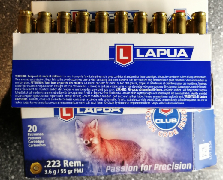 Biete 100 St. Lapua Hülsen im Kal. 223 Rem. aus einem Los mit Orig. Karton. Garantiert nur 1 mal abgefeuert. Bei Versand ins Ausland, bitte nachfragen wegen Versandkosten. Privatauktion, ohne Gewähr: